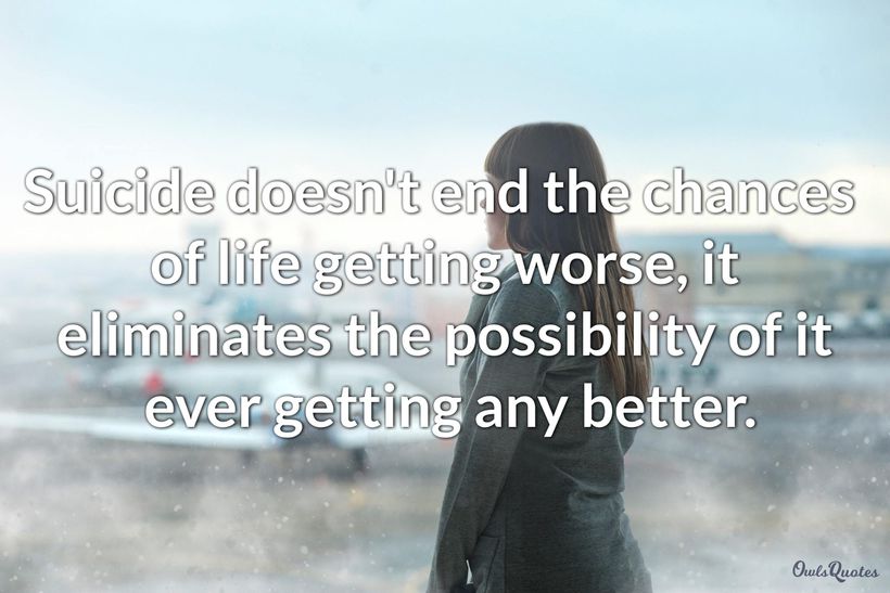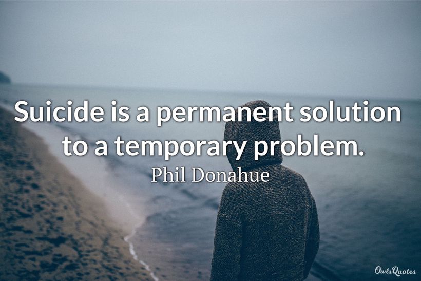 These suicide quotes make it clear that killing oneself is not a viable solution to life's problems. We should also realize that suicide attempts are also a cry for help. No one wants to kill themselves. People just want their lives to become better and when they can't find a way to do so, they think that killing themselves is the only solution.